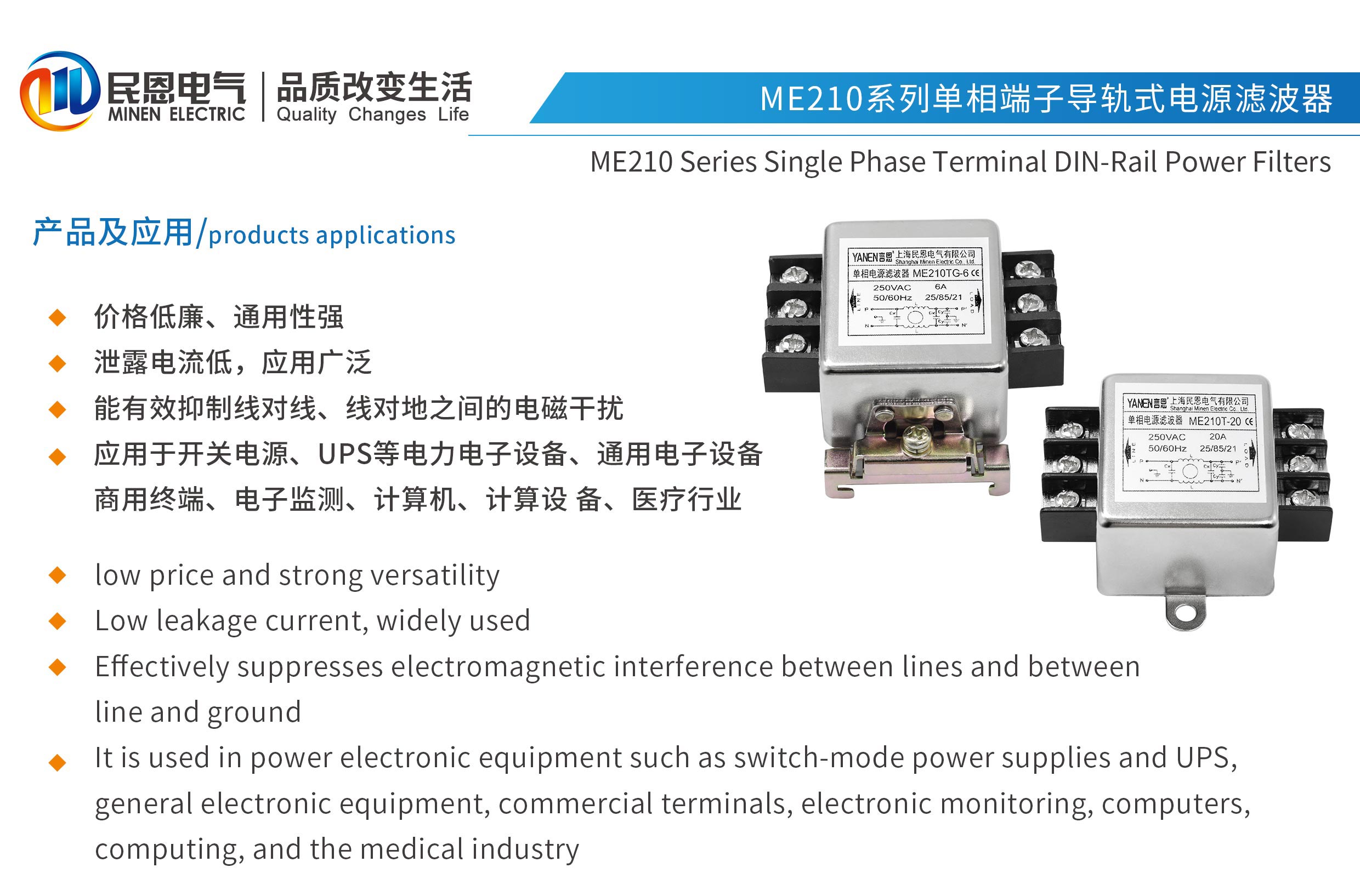 ME210T系列單相端子式電源濾波器