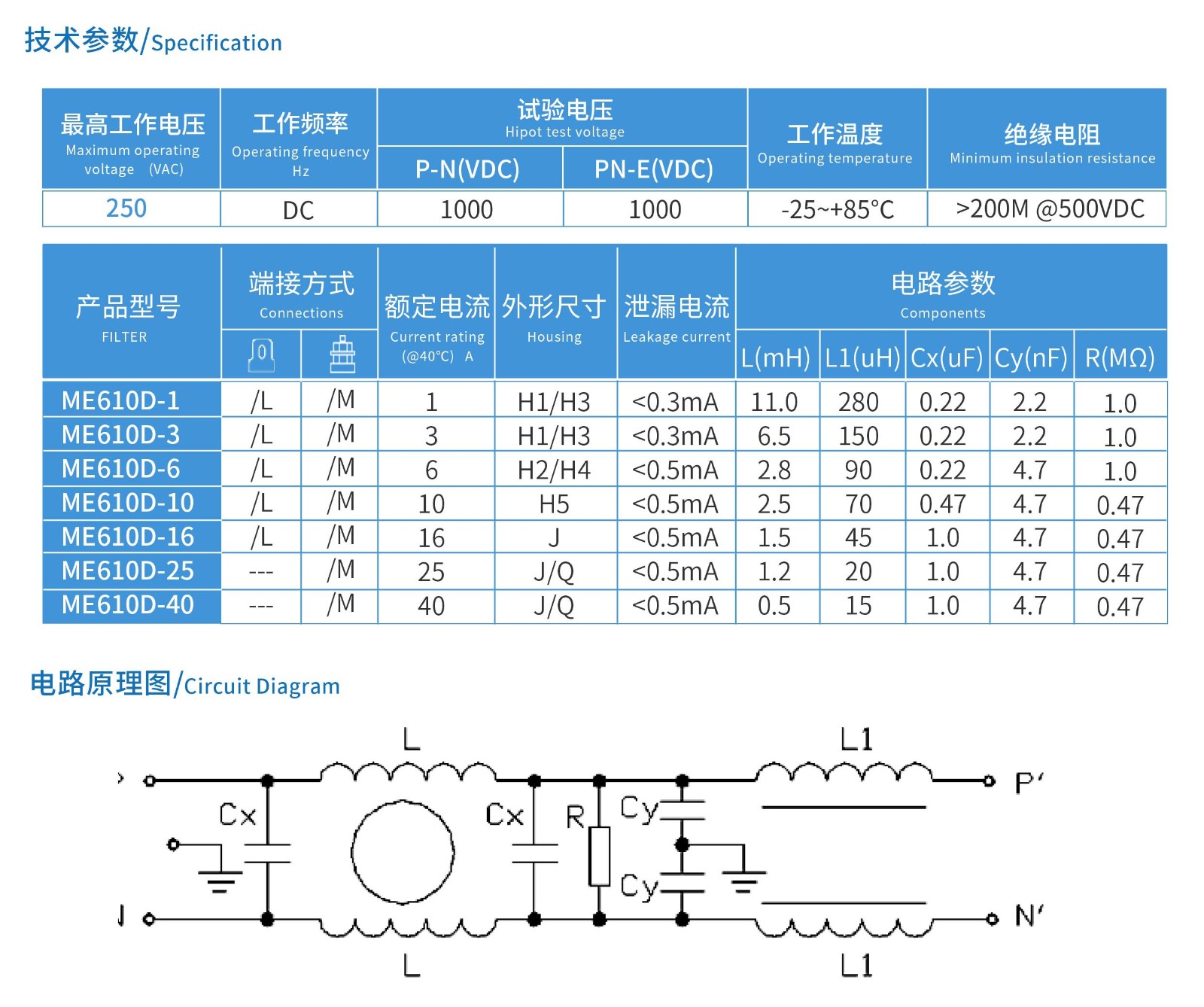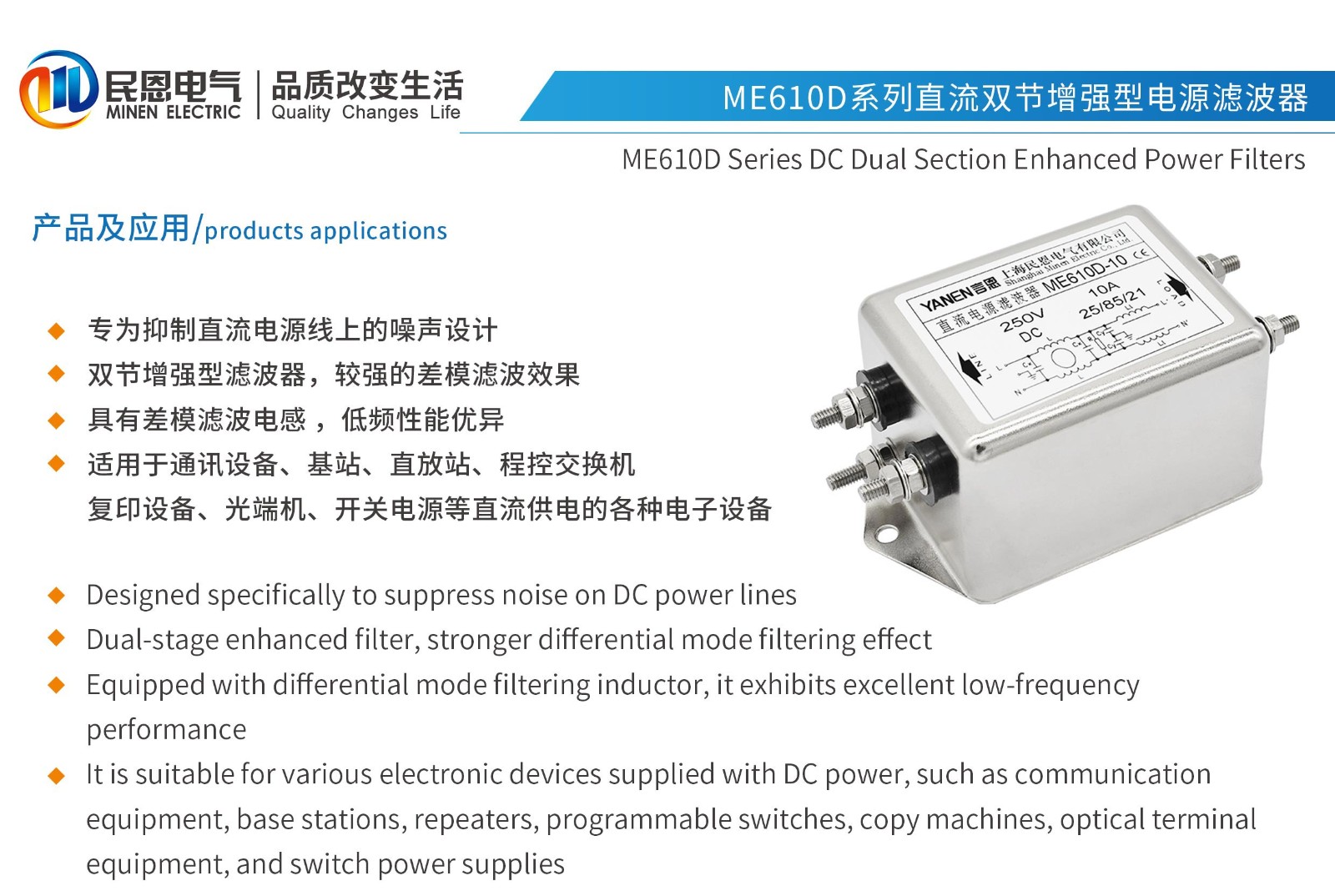 ME610D系列雙節(jié)增強(qiáng)型直流電源濾波器