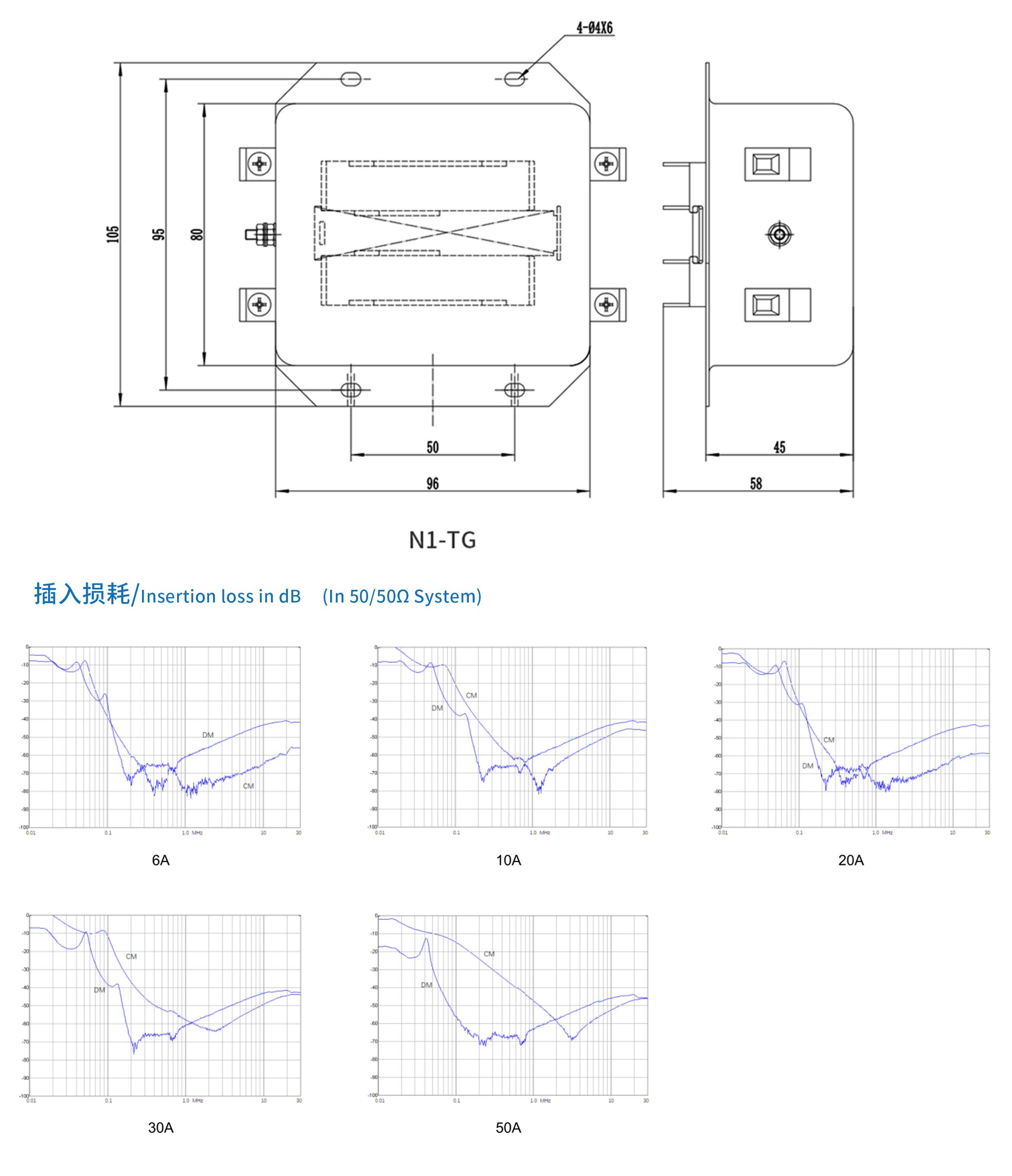 高性能型電源濾波器,在10KHz~30MHz寬范圍內具有較好的共模和差模濾波效果,三節濾波,可解決絕大多數設備的EMC/EMI問題
