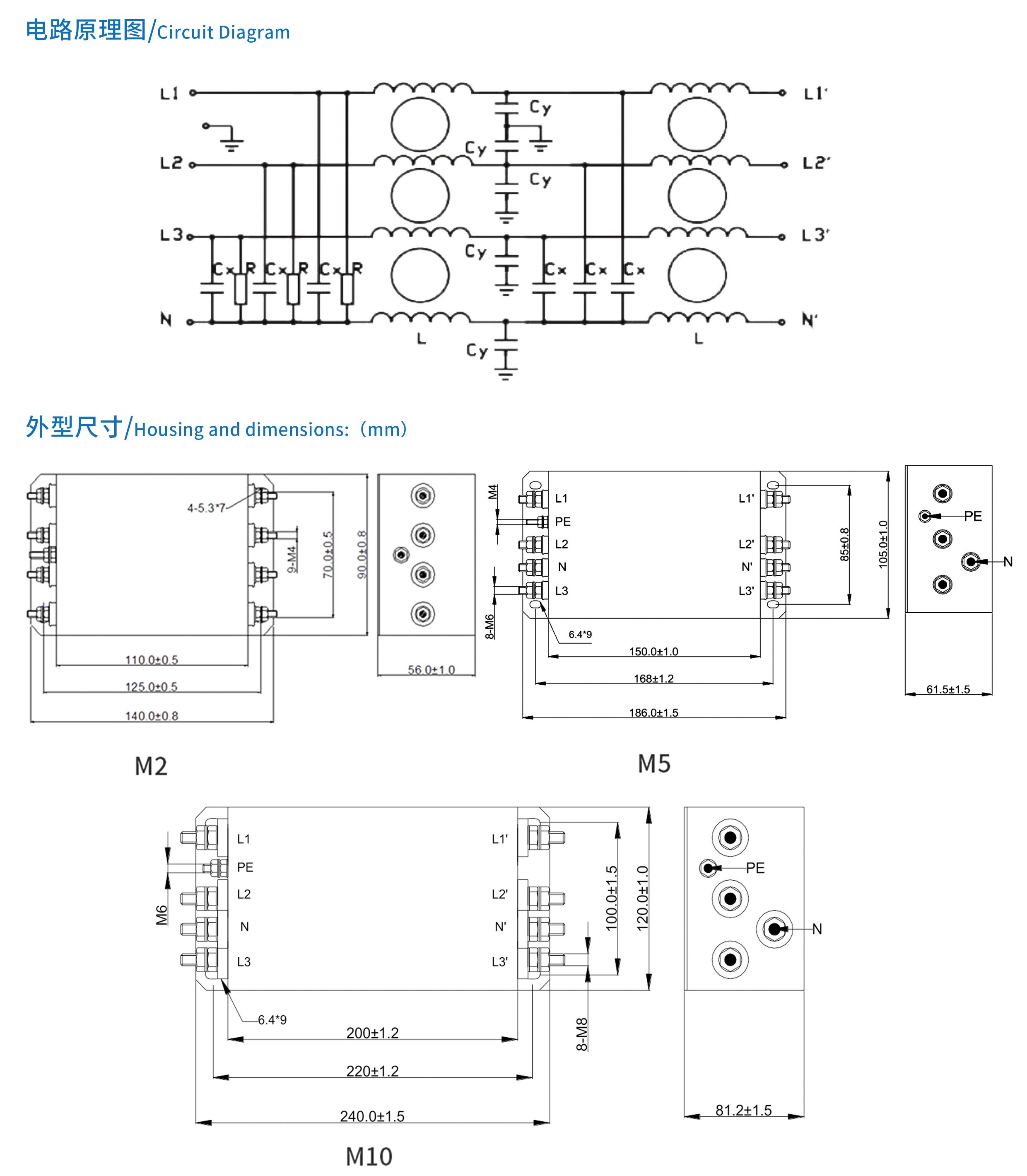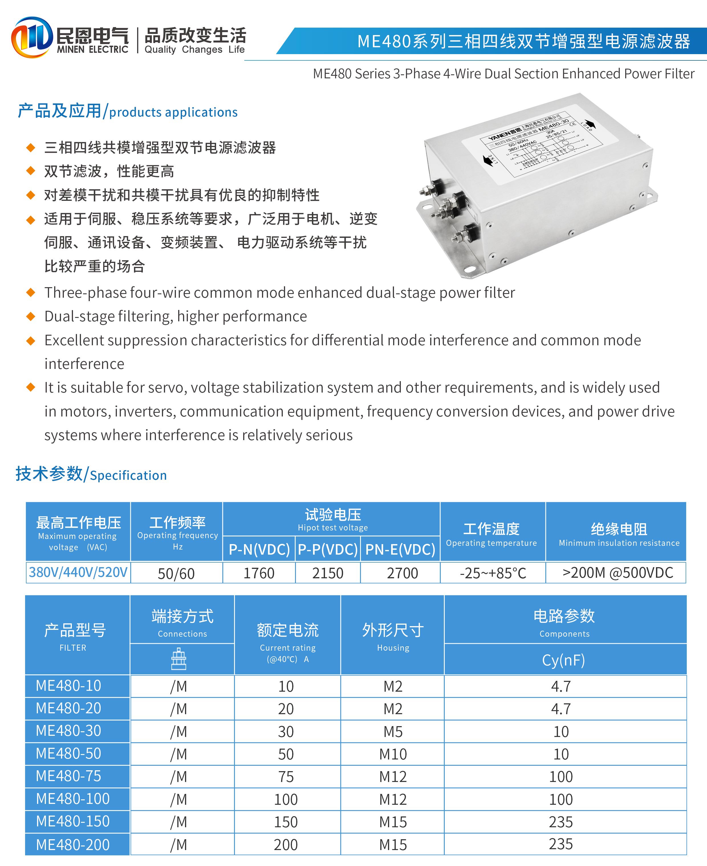 ME480系列雙節三相四線電源濾波器