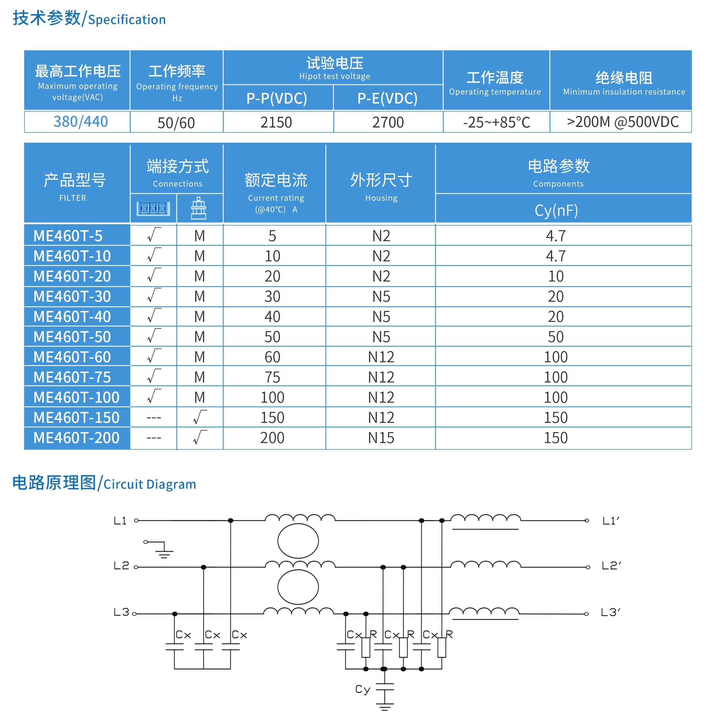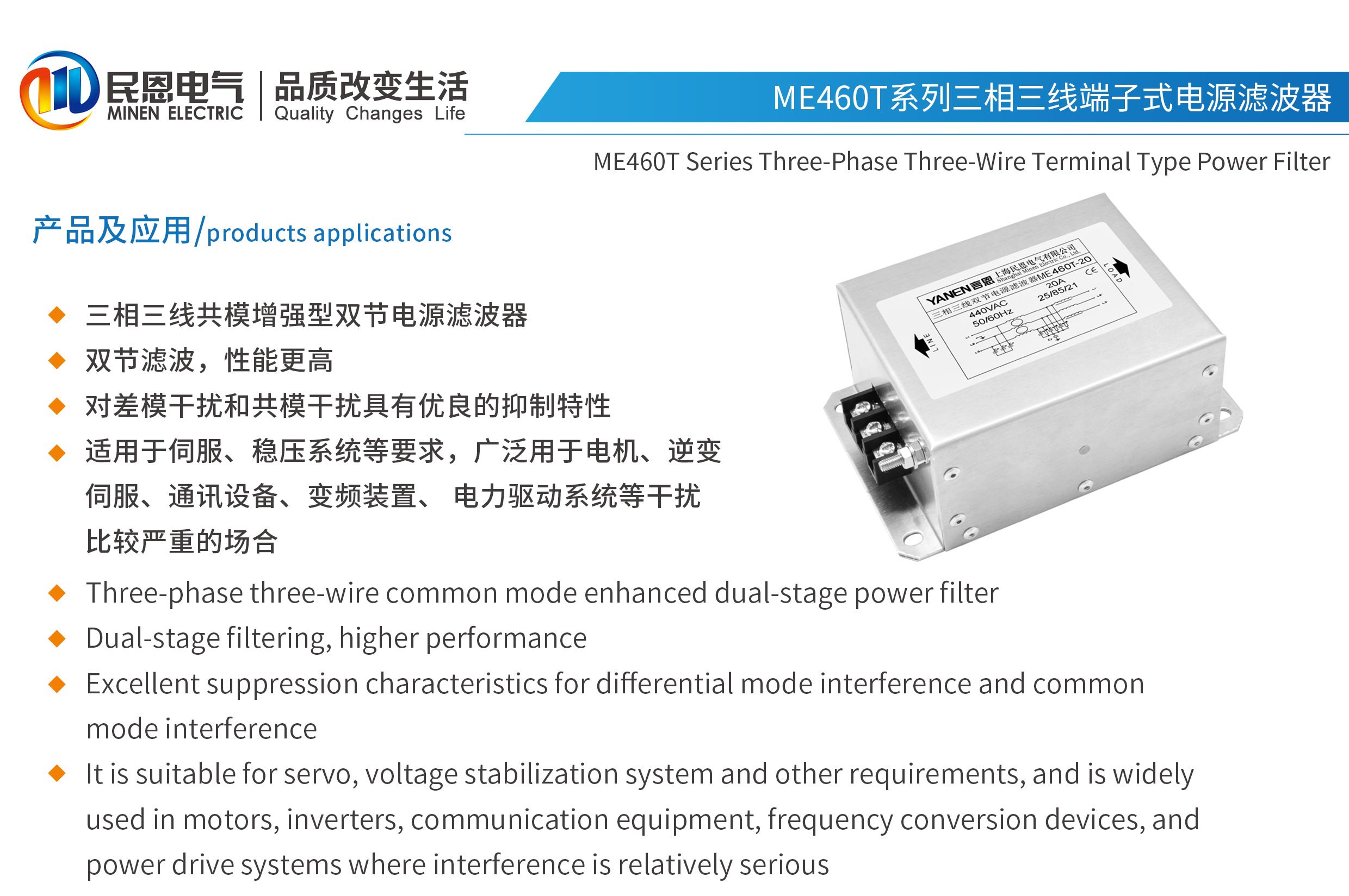 三相三線共模增強型雙節電源濾波器,雙節濾波,良好的共模、差模干擾抑制能力。