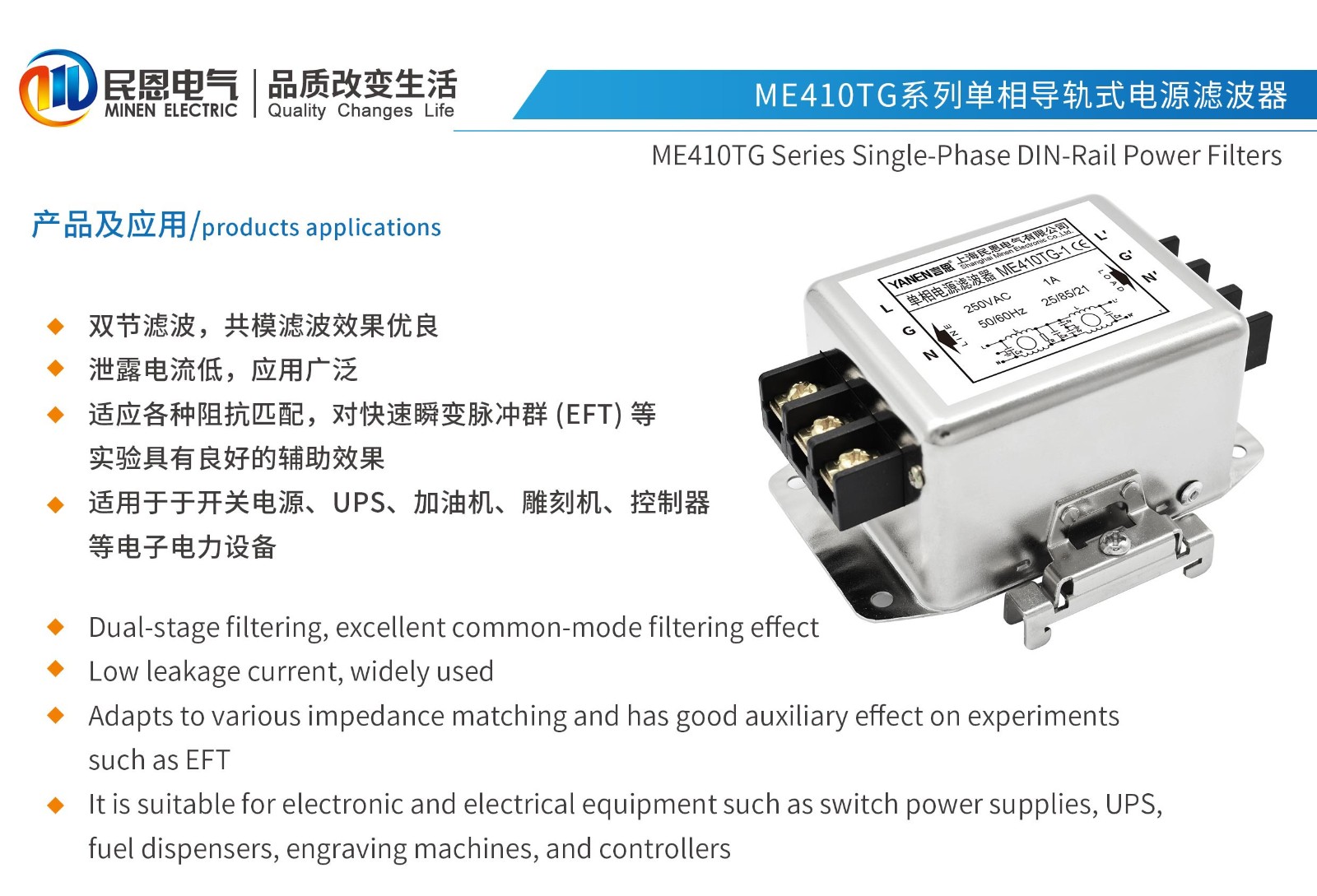 ME410TG系列單相端子導軌式電源濾波器