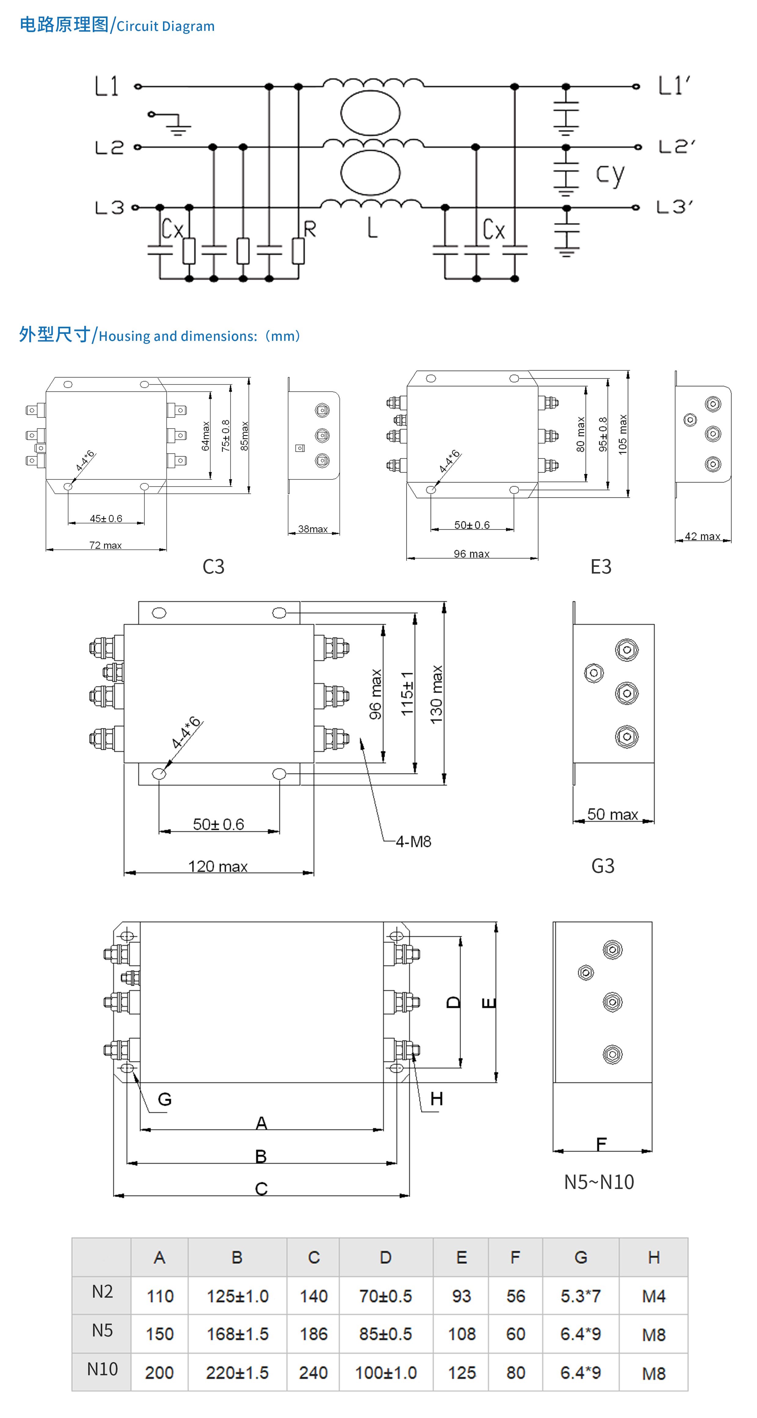 三相三線電源濾波器,濾波效果優良 ,優異的高低頻濾波特性,泄露電流低。